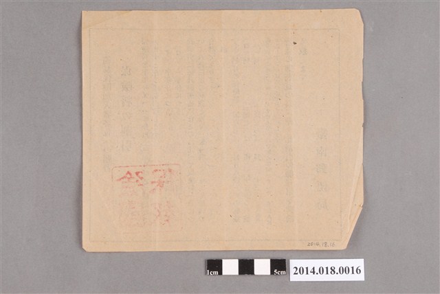 此一物件為與藏品編號103005-0001至103005-0014相同收藏脈絡之文物,推測應為昭和年(1926-1945)間的文物。