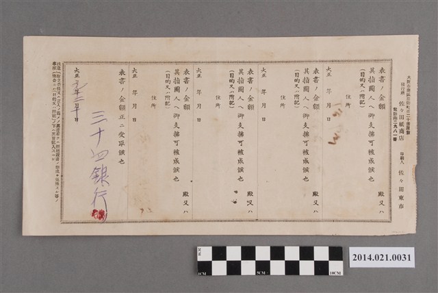 本件應為小幡松五郎開給臺北大稻埕洽隆號的票據,得向株式會社三十四銀行或指定對象進行票據交換支付。
