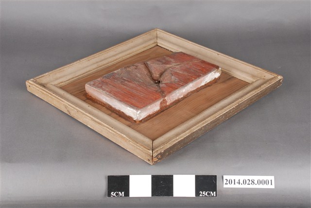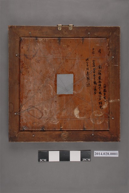 本件支壁磚上的彈孔為空襲當時機關槍掃射留下的痕跡為日治末期空襲時之見證,另外根據美軍繪製臺灣地圖,當時離下橋仔庄附近約1公里處被標誌為軍營(現約中興大學所在地),疑因此使該庄受到空襲波及。背框寫有清彰化縣藍興堡下橋仔庄林宅(林崧生宅),日治臺中州臺中市下橋仔頭庄等字。註:該址現為臺中市信義國小附近,該老宅已於1993年拆毀。