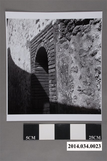 1. 黃則修於1987-1991年拍攝之「澎湖情懷」系列黑白照片之一,拍攝主題為澎湖湖西許家村聚落建築一隅,硓咕石牆及拱形磚造門。 2. 許家古厝群是屬於一落四櫸頭的澎湖傳統民宅形制,其過水庭的屋脊採燕尾式的官宅形式,為其最大之特色。