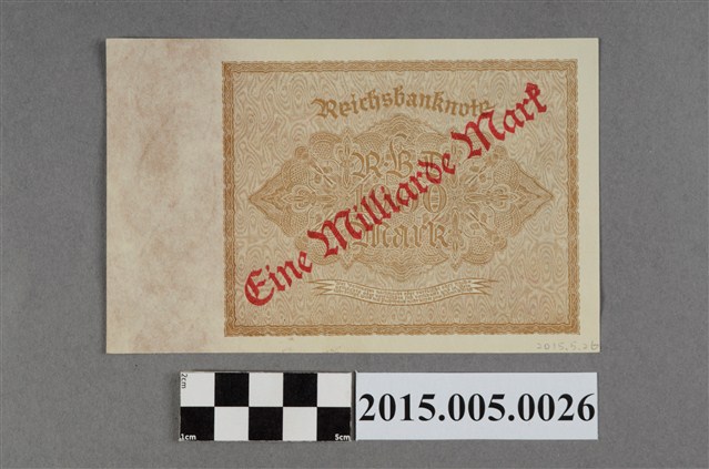 原先發行日期為1922年12月15日之1千馬克,但後來蓋了10億馬克的印,推測為1923年時加蓋之印