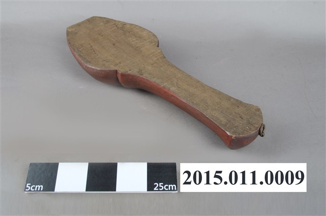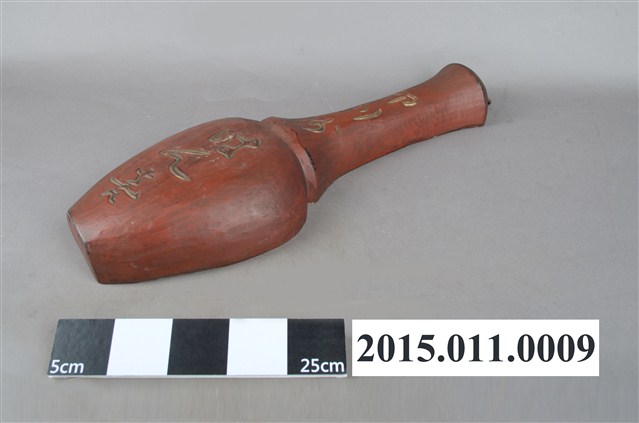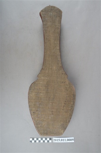 此為印刷商店的廣告牌,為木製,形似印章狀,上有日文廣告標語。