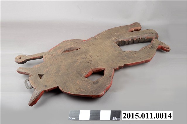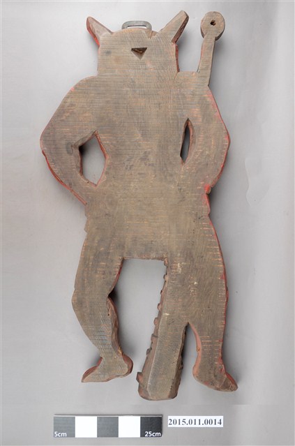 此為熊膽木香丸廣告牌,形狀為一個惡鬼拿著鋸刀的樣子,自日本江戶時代流傳至此,此種藥丸乃用於治療腹痛。