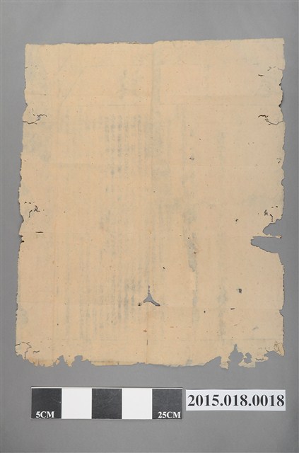 、此張契尾,為乾隆38年4月,頒給業戶吳天送買林岳園之制式憑證。為地區、金額所載處皆有破損。契尾蓋有多方滿漢文「諸羅縣印」及滿漢文「福建等處承宣布政使司之印」。契尾有經重新托裱的痕跡。