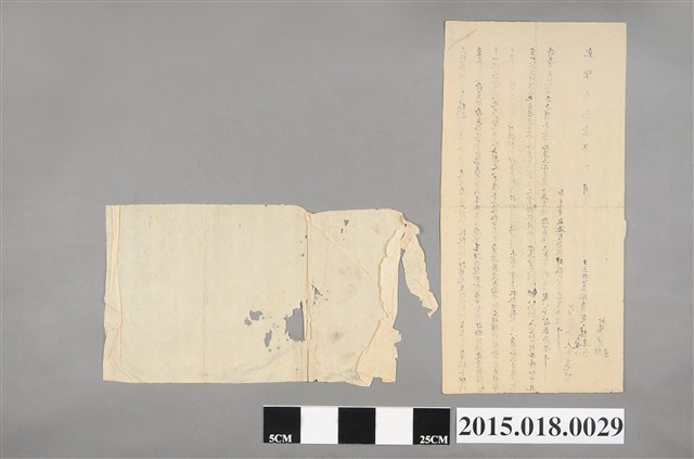 此買賣契約,為乾隆31年9月林天鳳、林連、蕭家等,將共築之瓦店壹座四間,售店予蘇宜,地點位於覆鼎金埤墘,交易金額40大員。契約第三行蓋有「書田公業貳房代收不得私廢」。