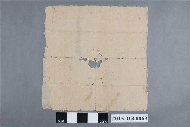 乾隆22年3月,蔡捷立賣契,以時價番銀218圓賣出新化里的土地。契約右上方有「驗訖」兩大紅字。紙有托裱過,仍遭蟲蛀損害。