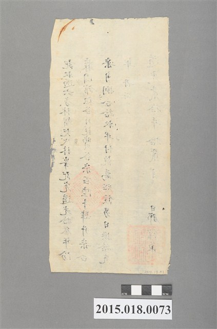 道光20年,蔴園館租谷耗銀完單,單上蓋有兩紅印。