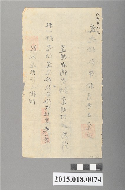 道光19年10月,陳晉聲遠記大租完單,林一峰繳納大租單據。