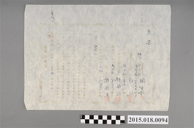 明治40年11月,楊瑞光等人給吳永之連帶借用證,以貯金講會金楊瑞光等人借六圓會金,依照日本時代制式表格填寫,借主楊瑞光外,另填有三位納務連帶責任人。