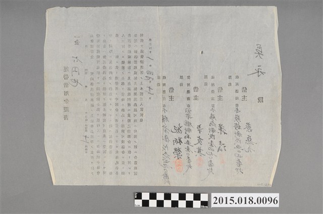 明治41年4月,紀炳榮等人給吳永之連帶借用金證書,以貯金講會金紀炳榮等人借六圓,依照日本時代制式表格填寫,借主共有4位分別為紀炳榮、卓友其、葉清、蔡惡九。