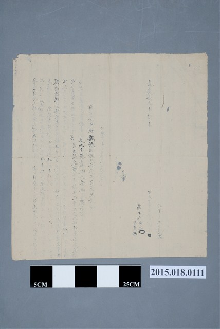 本契約為嘉慶15年6月,林富出售座落於臺邑仁和里之鹿崛1口併柴地1所予林宅,契約價銀柒拾叁大員。契約內文處蓋有紅色印字「書田公義 貳房代收不得私廢」。