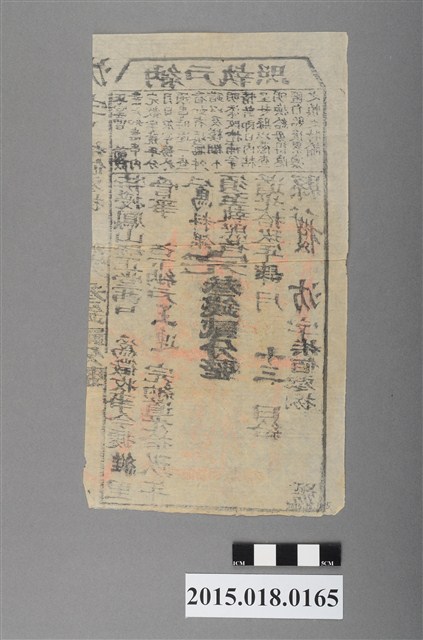 此為道光19年4月,王連完納馬料銀3錢2分,鳳山縣知縣曹謹發給之納戶執照。