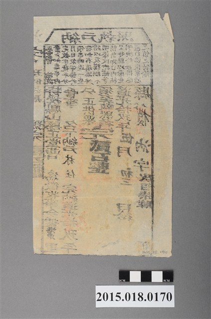 此為道光19年5月,林任完納正供栗2石,鳳山縣知縣曹謹發給之納戶執照。