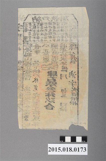 此為道光19年5月,林寬完納正供栗4石3升9合,鳳山縣知縣曹謹發給之納戶執照。