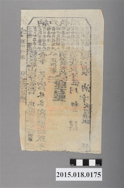 此為道光19年5月,林容完納正供栗4石,鳳山縣知縣曹謹發給之納戶執照。