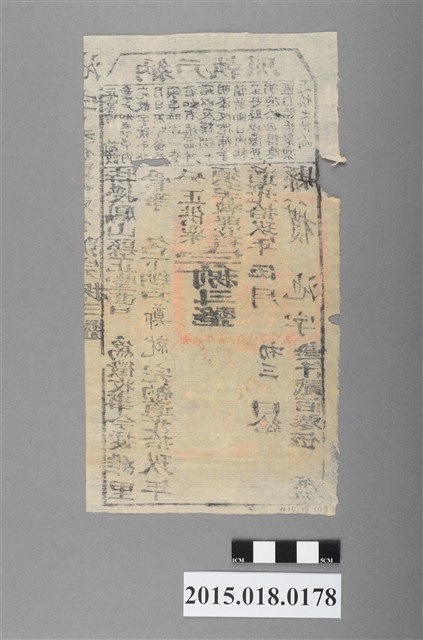 此為道光19年5月,鄭就完納正供栗8斗,鳳山縣知縣曹謹發給之納戶執照。