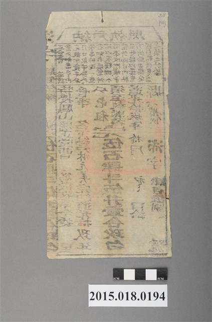 此為道光19年10月,林元美完納屯租5石4斗5升1合9勺,鳳山縣知縣曹謹發給之納戶執照。