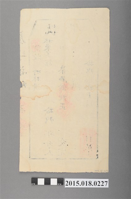 道光19年曹文侯給林東美館之完單執照,繳納大租並以粟繳納。