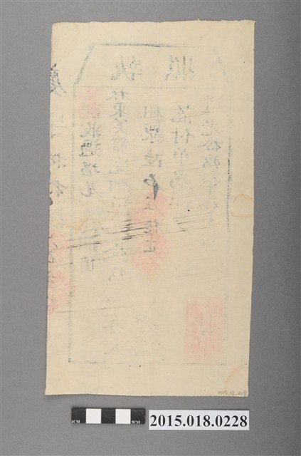道光19年曹文侯給林東美館之完單執照,繳納大租並以粟繳納。