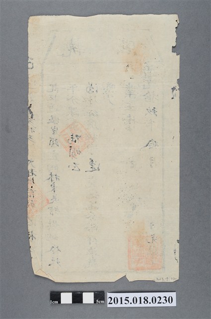 道光19年業主黃給林東美館之完單執照,運送租佃查和無誤後發給。