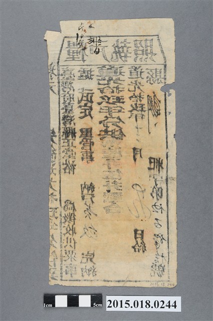 臺灣府臺灣縣徵收粟事,由武定里管事請納戶黃敏繳納,完繳後發給本單以做憑證。