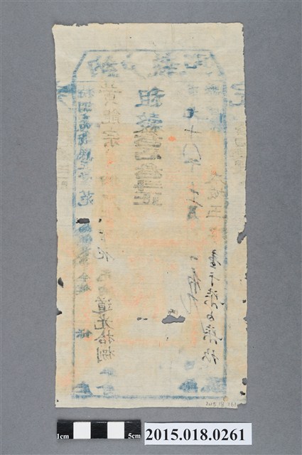 道光18年11月嘉義縣給黃能宗納戶林智記納戶執照,以組穀繳納。