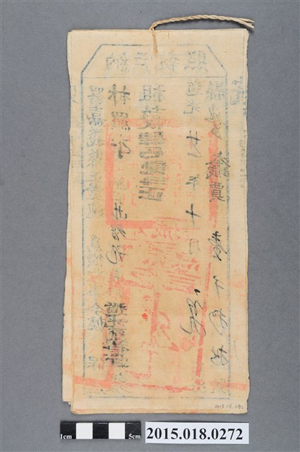 道光21年10月嘉義縣給劉興元納戶林智記納戶執照,勻丁繳納二錢二分整。