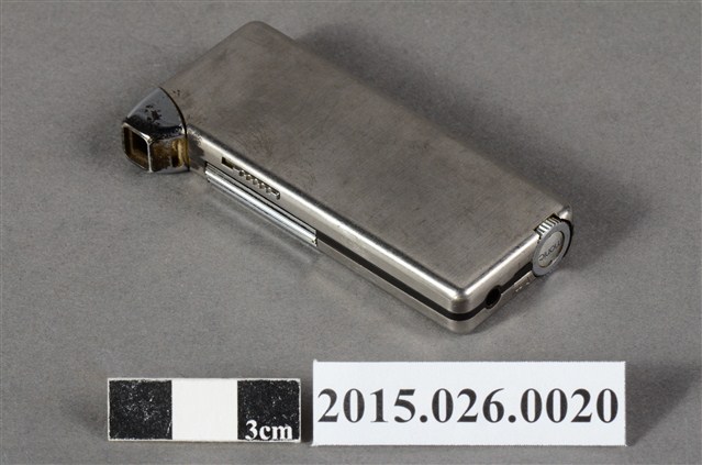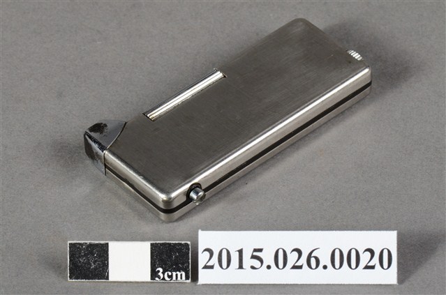 1. 本件為「臺灣攝影獨行俠」黃則修先生(1930-2014)年輕時收菸用的打火機。據黃玫芳女士描述,父親約於1950-1960年代擔任記者時期開始抽菸,因記者工作趕稿壓力、交際應酬等因素而有吸菸習慣,所抽之菸種十分眾多,包括香菸(以長壽菸為主)、雪茄、菸草(煙斗菸)等。抽菸的菸齡約有二、三十年之久,約至1985年至實踐大學教書,因學校禁菸才戒菸。