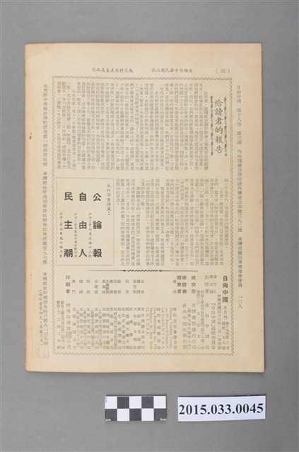 (一)近年的政治心理與作風(「今日的問題」之十四 社論 本刊