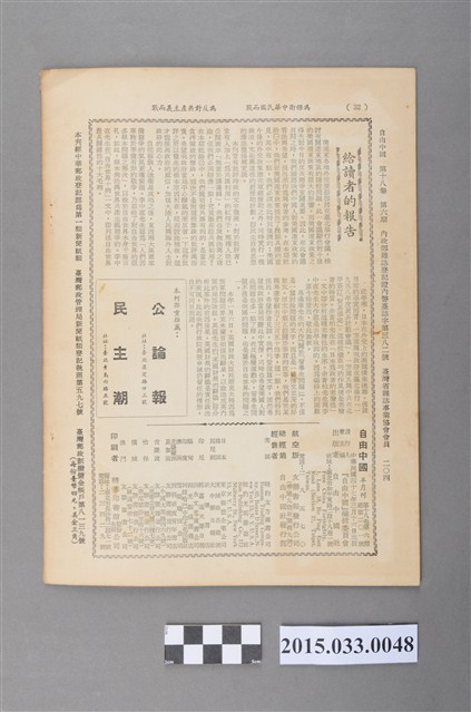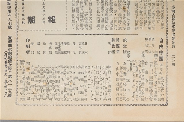 (一)中國人看美國的遠東政策-對美遠東使節的臺北會議提幾點坦率建議 社論 本刊