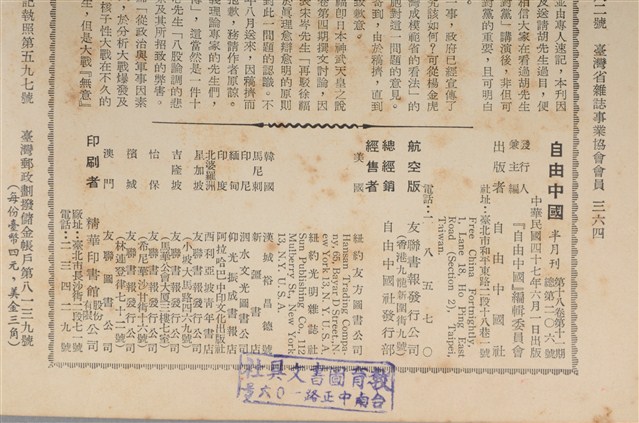半月大事記,本刊,(一)再論青年反共救國團撤銷問題,本刊,(二)為學術教育工作者請命,本刊,(三)南美洲教訓了英國什麼?本刊,從爭取言論自由談到反對黨,胡適講、楊欣泉記,一個臺灣人對建設臺灣成模範省的看法,楊金虎,再駁徐福即神武天皇說,宋岑,八股論調的悲哀,朱佛心,從政治與均事因素看大戰爆發的可能性,鼎山,狄托與莫斯科爭執內情與影響,丁堅,捶帖朱西甯,笑容(補登),徐訏,(一)補正『籲請立監兩院澈查司法黑暗』一文,喻伯凱,(二)『惡性畢業捐』應明令禁止………向劉真廳長提一個建議,王家燕,(三)籲請國民黨切勿再打擊立法院聲望,程海公,給讀者的報告,本刊。(陳亭靜撰文,陳怡宏校正)