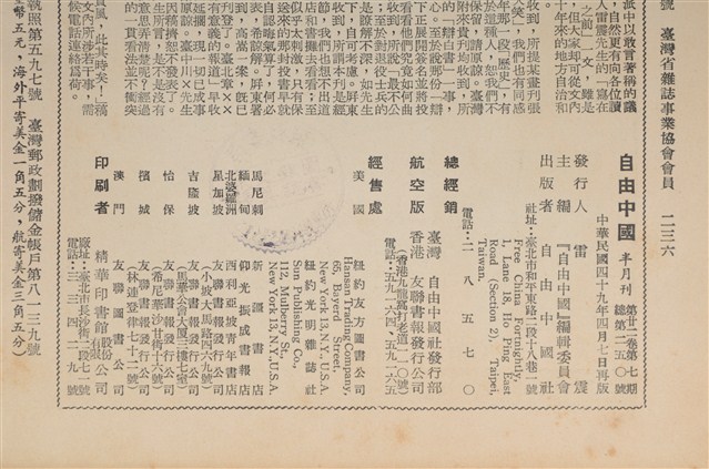 (一)蔣總統如何向歷史交待?本刊,(二)韓國的流血選舉與反對派的榜樣,本刊,(三)就地方選舉向國民黨再進一言,本刊,地方選舉的「三黨主義」,朱文伯,從把握時機促進團結說到地方選舉,楊金虎,由地方選舉看民主政治的前途,王嵐僧,割除選癌.收拾民心,王地,(一)如此擁護連任!南瀛,(二)請問政府用意何在?陳衷言,執政黨控制下的臺北市議會如此總質詢!宋霖康,寫在「臺灣地方自治與選舉的檢討」之前,雷震,美國大選前途的展望,南園,(三)「陳情書」,第二光盛輪難屬代表,「黑馬」與「寵兒」,喬志高,論今本紅樓夢的後四十回(下),趙岡,江湖行(十八續),徐訏,(四)敬向教育廳劉廳長請教,譚益齋,在野黨及無黨無派人土向國民黨及政府提出的十五點要求(來件),本刊。(陳亭靜撰文,陳怡宏校正)