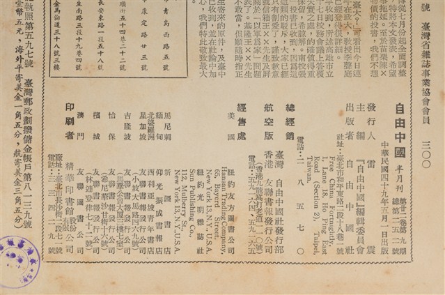 (一)「五四」是我們的燈塔!本刊,(二)韓國人民的憤怒驚醒了美國政府!本刊,(三)這樣的地方選舉能算「公平合法」嗎?本刊,(四)政府不應縱容中廣公司違法!本刊,害「五四精神」的幽靈-現代中國社會心理的分析,謝文孫,談軍人待遇與生活實況-兼論其對於士氣和建軍的影響,彭觀清,(一)請解禁攝影範圍,一攝影者,介紹明年美國新總統,董鼎山,學術自由在臺大?石翠,談美國的總統預選,黃錫照,江湖行(二十續),徐訏,(二)從美國看臺灣,玉東,(三)一腔孤憤話醫療,黃漢昇。(陳亭靜撰文,陳怡宏校正)