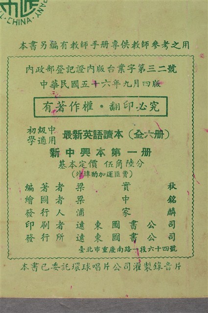 國立編譯館主編《初級中學適用最新英語讀本第1冊》