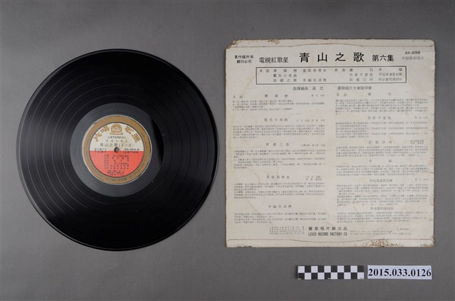 此份文物為唱片,麗歌唱片發行,電視紅歌星 青山之歌第六集唱片。(陳亭靜撰文,陳怡宏校正)