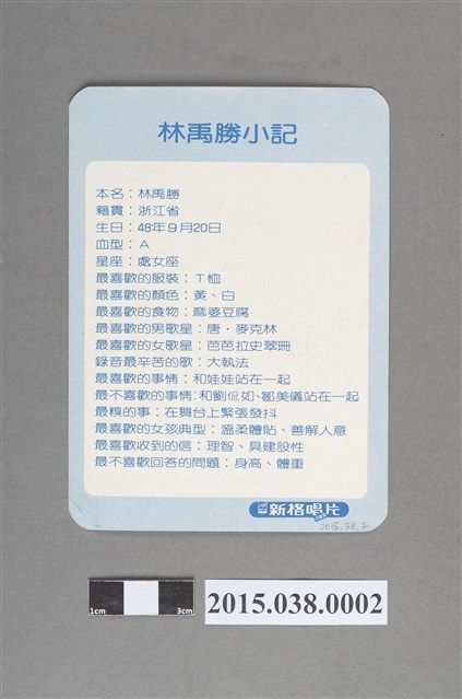 新格唱片出品,背面為歌手林禹勝介紹
