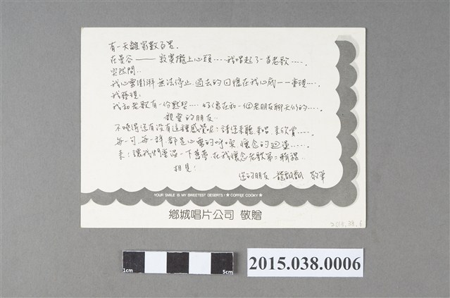 鄉城唱片公司印製,宣傳「龍飄飄懷念老歌第2輯」,背面有龍飄飄手寫宣傳詞