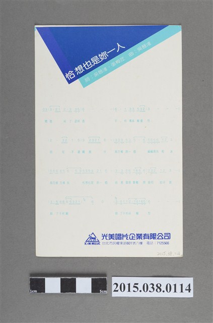 光美唱片印行,背面印有〈恰想也是你一人〉(詞:吳晉淮、張梅莊 曲:吳晉淮)簡譜。專輯發行於1983-1984年間。