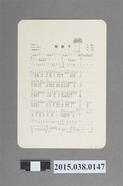 背面印有〈榕樹下〉(阮騰曲、慎芝詞、余天唱、麗歌唱片發行)。〈榕樹下〉為日本歌曲〈北國之春〉翻唱的國語歌,作曲為遠藤實。吳小惠為1970年代演員,1967年出道童星,演出多部武術電影。
