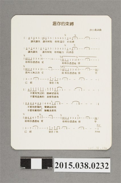 註明「海山唱片旗下巨星」,背面〈溫純的束縛〉(洪小喬詞曲)簡譜