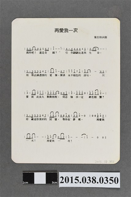 註明「海山唱片旗下巨星」,背面〈再愛我一次〉簡譜。