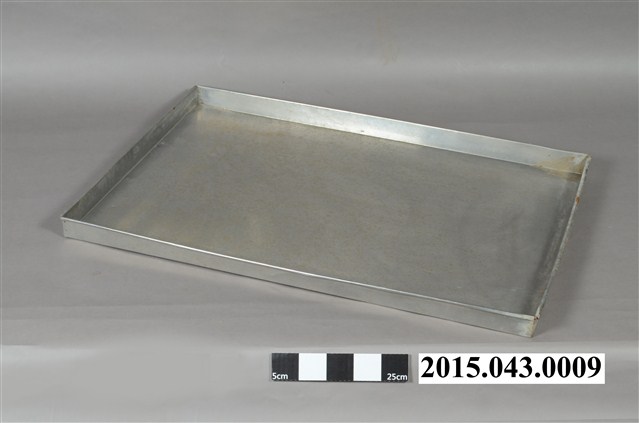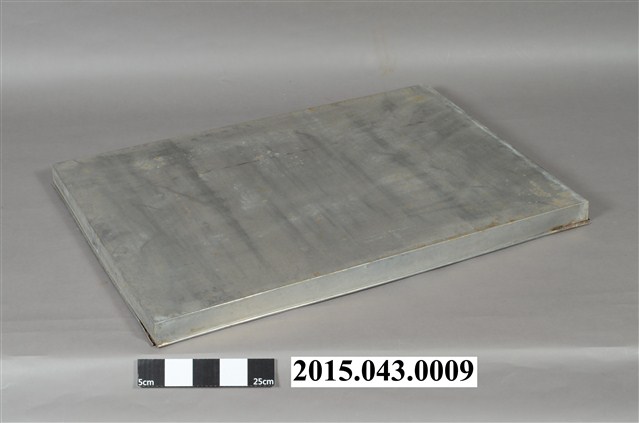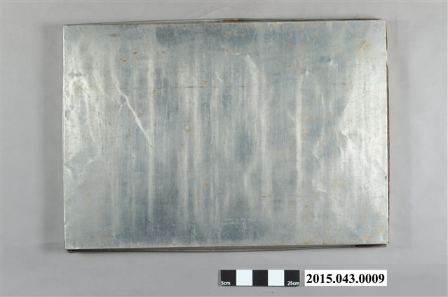 2. 本件洗相盤外形呈長方形,長97公分,寬68公分,高4.5公分,四角方角轉。不銹鋼材質,可耐酸鹼。主要用來墊在小型洗相盤下面,防止相片漂洗時化學藥水滲漏或濺出。