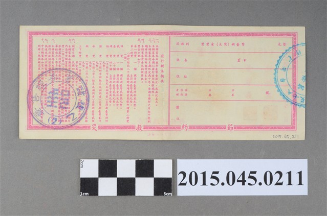 八七災區復興建設有獎儲蓄券(第拾壹期) 1959年8月7日起連續數日,臺灣苗栗以南至高雄地區,出現60年來前所未見的狂風暴雨,以致整個中南部陷入嚴重的水患中,災情慘重,鐵公路全面癱瘓,災民多達數十萬人,此自然災害被稱為「八七水災」,而此儲蓄券則是政府為了籌措重建災區經費。
