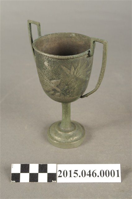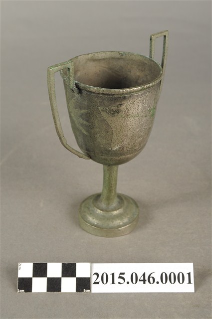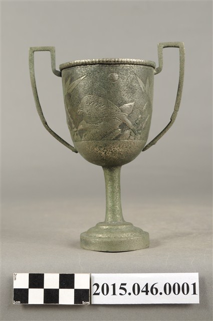 本件文物為陳文炎先生代表台灣省參加1948年在上海舉辦的第七屆全國運動大會,一千六百公尺接力賽所獲得的冠軍獎杯,由「台灣旅滬同鄉會敬贈」。獎杯正面中央祝賀「獨占鰲峯」,右方為得獎者的姓名:陳文炎、林丙丁、賴有德(後任職台中雙十國中教師)、陳英郎(後任職台銀總行國外部副理)。其中陳文炎為嘉農畢業的好手,他跟陳英郎則都是雲林人,陳英郎更曾為我國奧運代表隊的選手。第七屆全國運動大會依規定應於1937年在南京市舉行,但因中日戰爭,全國運動會停頓13年,戰後終於在上海市舉行,參加單位遍及海內外,包括華僑與全國路海空勤警等單位,這也是台灣光復後,首次以台灣省名義參加全國運動會。而在全運會中,台灣獲得了男子田徑的總錦標,強盛的田徑實力令人側目。