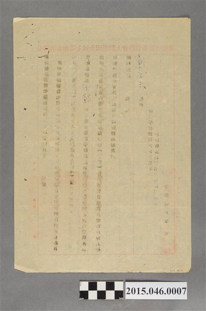 本件文物為1948年台灣省參加第七屆全國運動大會籌備委員會所發之選拔通知書,通知書用意係因陳文炎先生為田徑隊初選合格選手,因此邀請其至台北參加第七屆全運會正式選手選拔。第七屆全國運動大會依規定原應於1937年於南京市舉行,但因中日戰爭,全國運動會停頓13年,戰後終在上海市舉行,參加單位遍及海內外,包括華僑與全國路海空勤警等單位,這也是戰後臺灣首次以台灣省名義參加全國運動會。