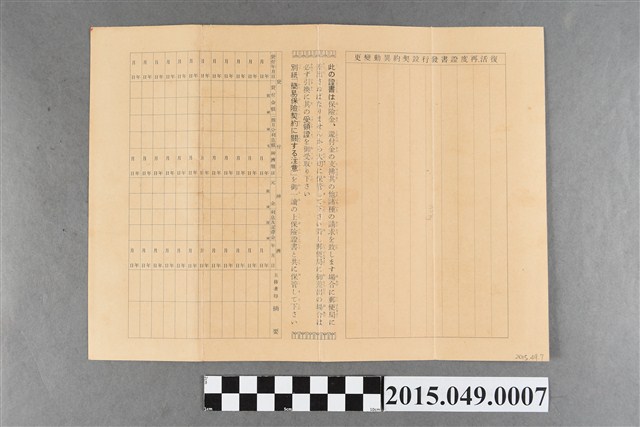 遞信省簡易保險局給蔡保教簡易生命保險證書