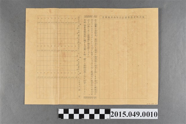 保險院簡易保險局給蔡天凰簡易生命保險證書