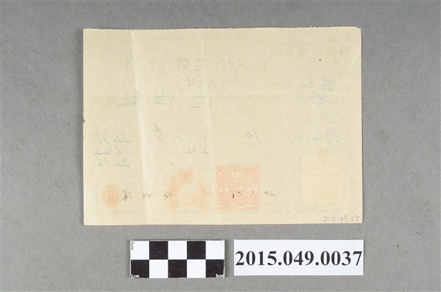 蔡家後來在日本時代末期改姓佐伯,此為稱為佐伯毅(即蔡天凰)繳納帝國生命保險株式會社保險費20.36圓收據,保險金額為1千圓。