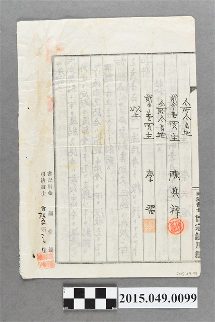 蔡天凰賣土地予陳其祥與李習土地,該地為高雄市北野町1丁目47番地之買賣契約書。司法書士為曾宗鏡。