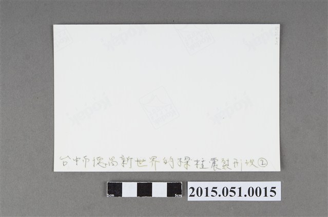 本件為4X6吋照片,柯達(Kodak)相紙沖印,影像內容為1999年9月21日921地震發生,導致臺中市南區五權南路上剛落成的德昌新世界電梯大廈,樑柱震裂,幾乎被震垮,也造成4名居民死亡,後來被公共工程委員會勘驗認定為全倒的建物,本件為樑柱震裂特寫鏡頭。拍攝者與拍攝日期不詳。 背面書寫有「台中市德昌新世界大廈的樑柱震裂情況②」說明文字。